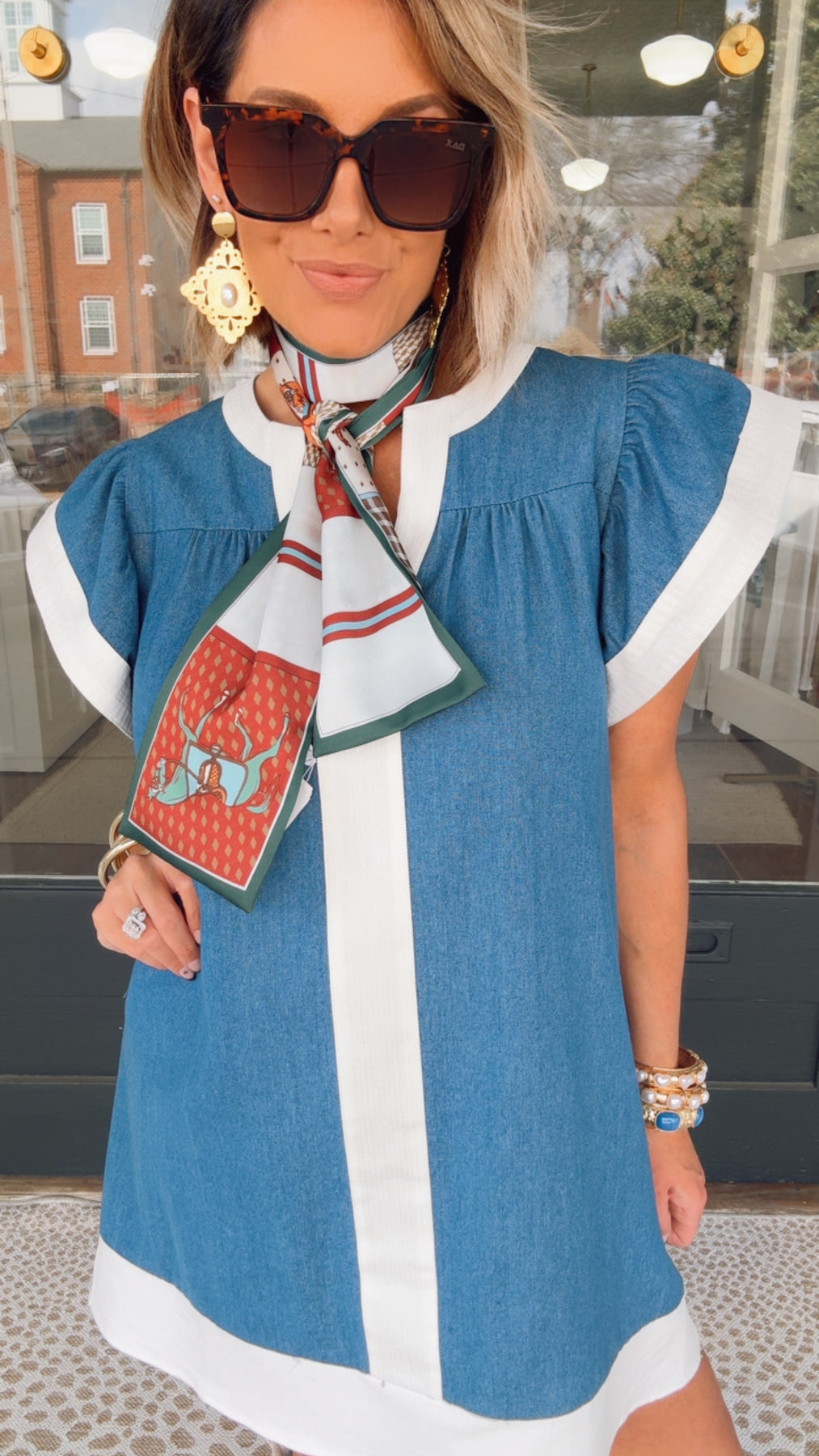 THML Delsi Denim Dress Crafted from quality denim, the Delsi dress features distinctive flutter sleeves that add movement and feminine appeal to a timeless silhouette. The structured fabric holds its shape throughout the day, while the relaxed fit offers comfort without sacrificing style. Perfect for casual outings or dressed up with accessories, this versatile piece transitions seamlessly from season to season. A wardrobe essential that pairs effortlessly with sneakers, boots, or sandals.