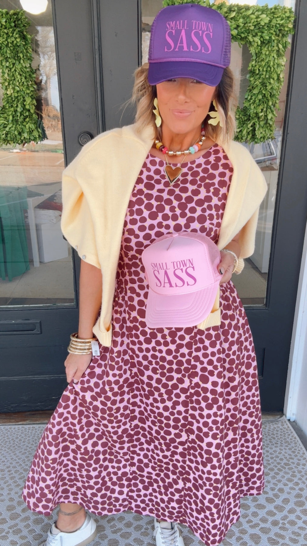Top off your town-trotting adventures with the Small Town Sass Hat! This trendy headgear is your ticket to instant coolness—perfect for keeping the sun out of your eyes while you strut your stuff (or just grab a coffee). Wear it with pride, because let’s face it, who doesn’t love a little hometown flair?