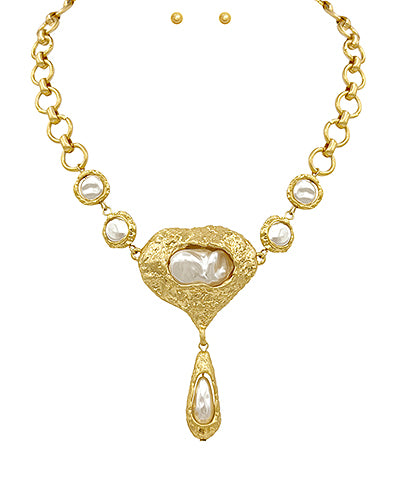 End Teardrop Geometric w/Pearl Necklace Set