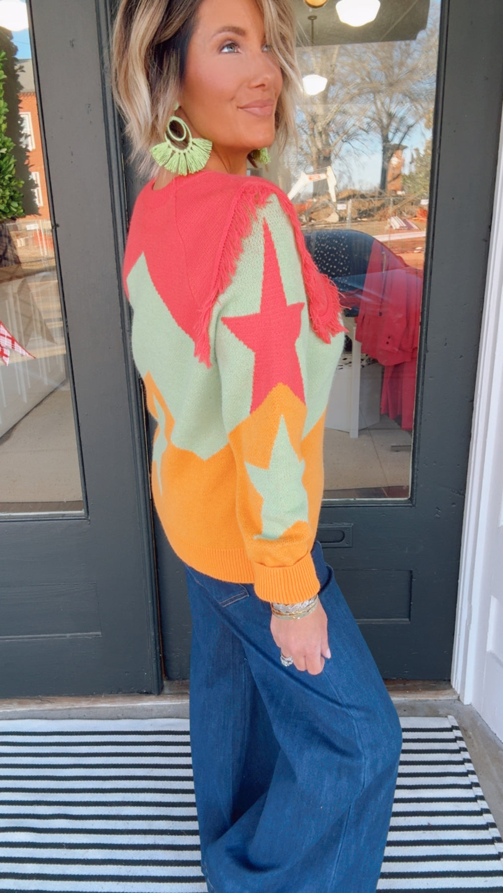 Reach for the stars in this playful fringe sweater top that brings instant personality to your everyday rotation. Featuring a charming star motif and flowy fringe detailing, it's the kind of piece that makes a statement without trying too hard. Perfect for layering over basics or wearing solo, this multi-color design adds just the right amount of sass to casual outfits. Cozy, quirky, and undeniably fun—your new favorite top is here.