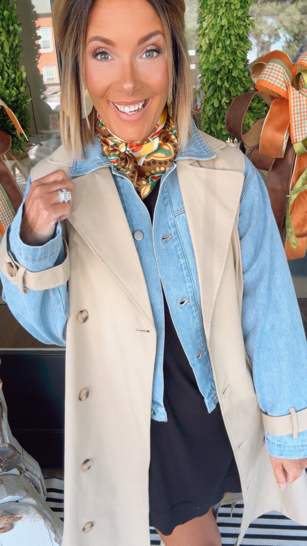 Make a bold statement with this layered look trench coat featuring a unique denim jacket lining. Crafted from a soft blend of 66% rayon and 34% polyester, with a contrasting 100% rayon interior, it combines edgy style with comfortable wear. Perfect for those who dare to stand out, this coat adds depth and attitude to any outfit.