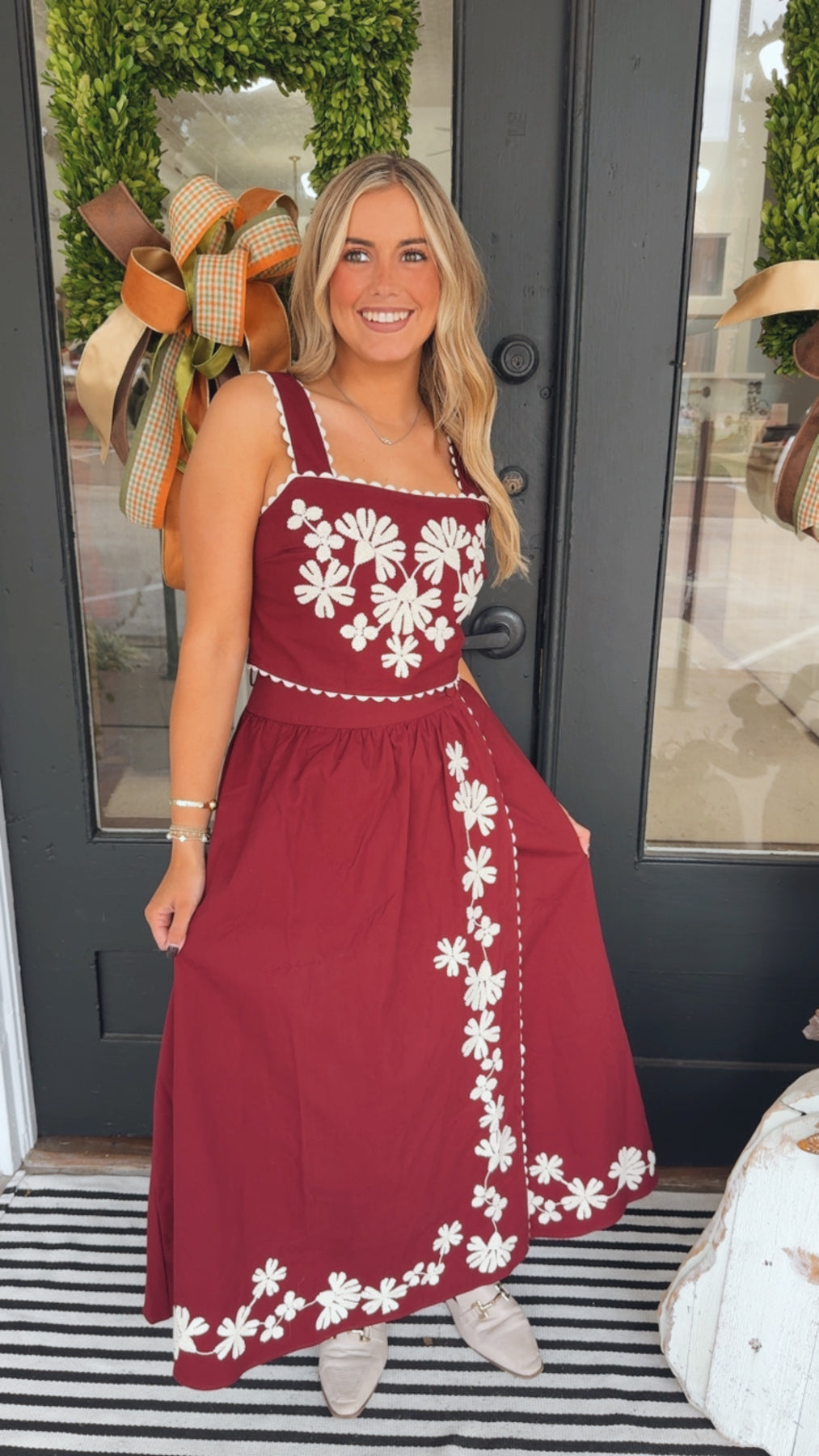 Turn heads in The Flower Child Set, featuring an embroidered crop top paired with a flowing midi skirt. This daring duo combines delicate floral stitching with bold, flattering cuts that showcase your confidence and style. Perfect for making a statement at any occasion, it balances playful charm with edgy sophistication.