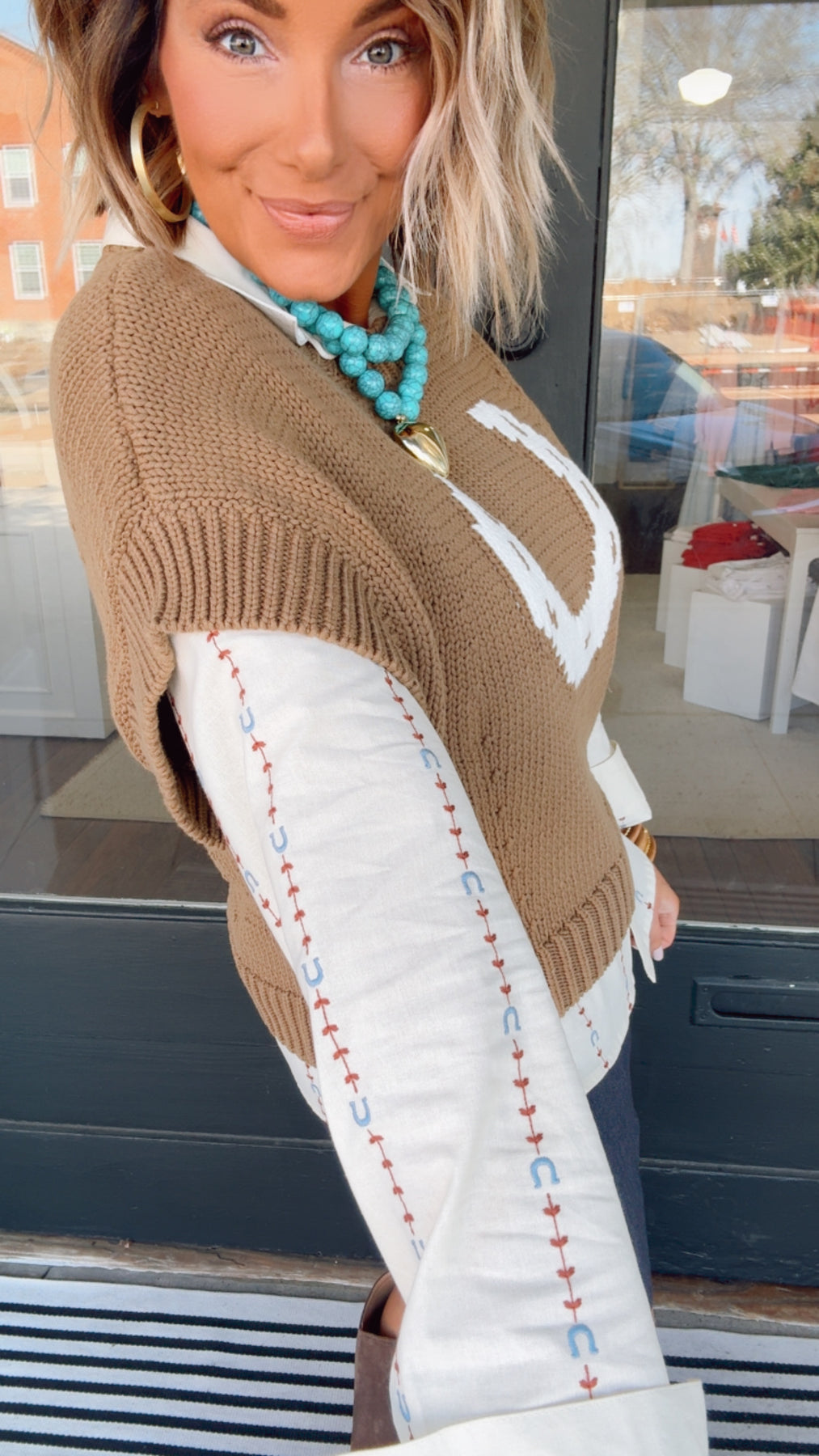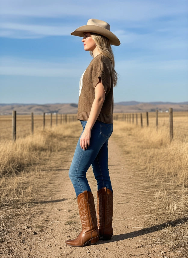 Saddle up in style with The Horseshoe Vest, a medium-heavy weight sweater that's become a customer favorite. Crafted from a durable 60% cotton and 40% nylon blend, this piece delivers the perfect balance of comfort and structure. The western-inspired horseshoe design adds a touch of sass to any outfit, whether you're heading to town or staying cozy at home. Built to last through countless wears and washes, it's the kind of versatile layer that earns its place in your everyday rotation.